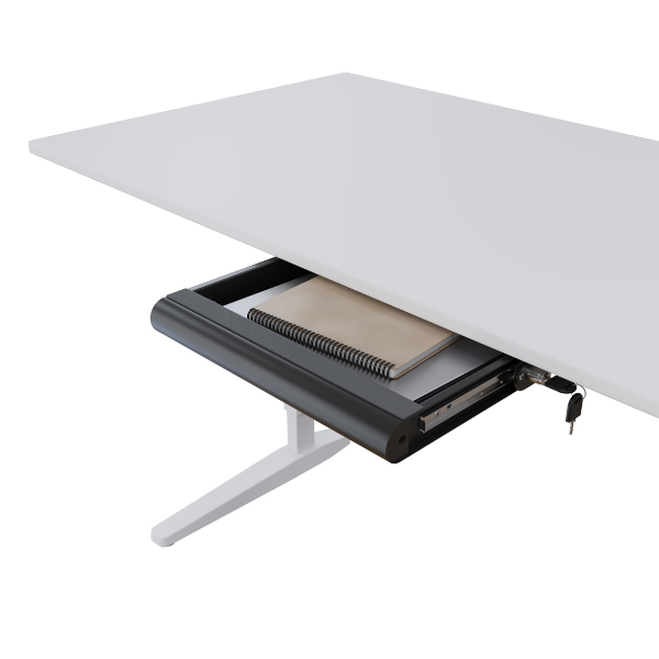 Het strakke, zwarte design past in moderne kantooromgevingen én thuiswerkplekken. De lade is gemaakt van duurzaam staal voor maximale stevigheid zonder concessies te doen aan functionaliteit. De combinatie van robuuste materialen en intuïtieve details maakt deze opslaglade een betrouwbare keuze voor dagelijks gebruik.