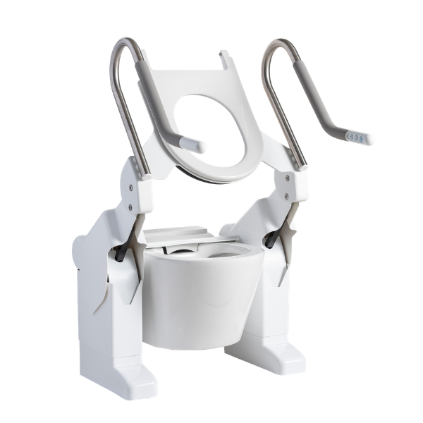 De toiletlift wordt bovenop een bestaand toilet geplaatst. Hierdoor is een ingrijpende verbouwing meestal niet nodig. Dat maakt het een toegankelijke oplossing voor zowel nieuwe als bestaande zorgomgevingen. Het compacte ontwerp zorgt ervoor dat de lift in vrijwel elke sanitaire ruimte past. De opklapbare armsteunen bieden extra stabiliteit tijdens het gebruik en maken transfers veiliger.