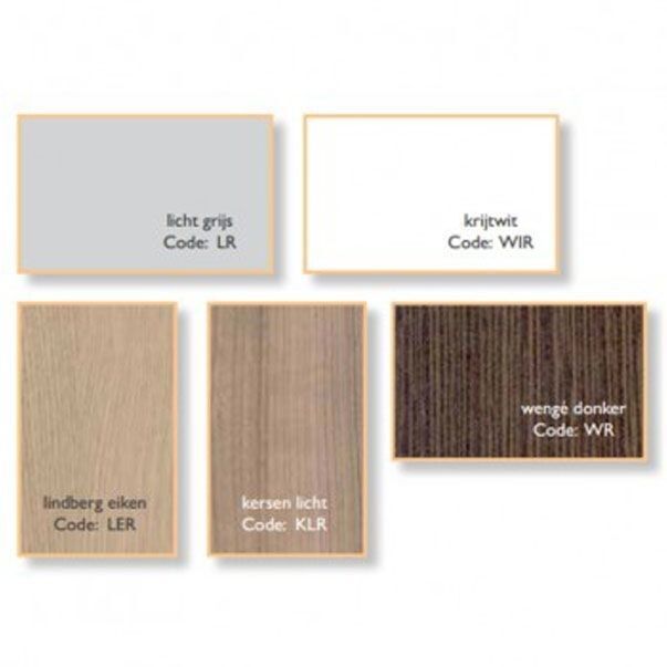 Het blad is van krasbestendig en onderhoudsarm HPL of melamine, beschikbaar in diverse kleuren.