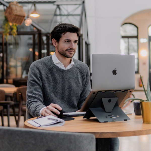 De Ergo‑Q 160 brengt jouw scherm op een ergonomisch verantwoorde hoogte, wat helpt nekklachten en scolioseklachten te voorkomen bij langdurig laptopgebruik. Dankzij de vijf sleuven kun je de hoogte makkelijk aanpassen, zelfs onderweg: perfect op kantoor, thuis of op een flexplek.