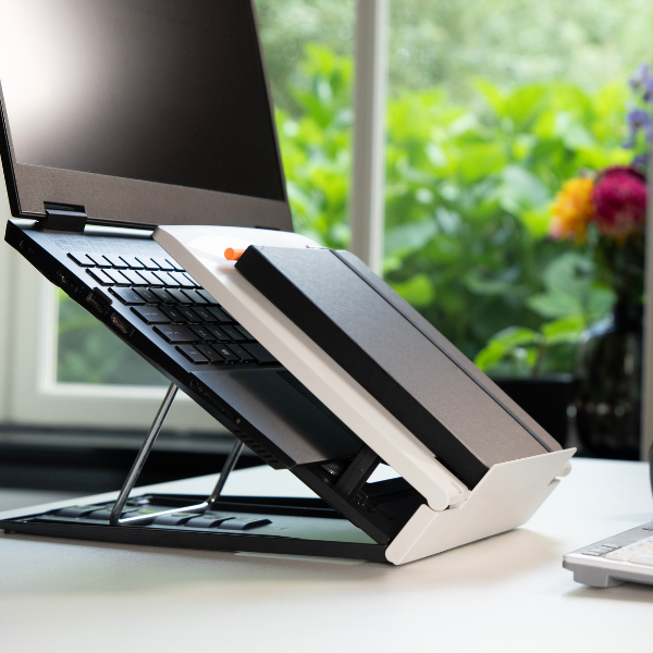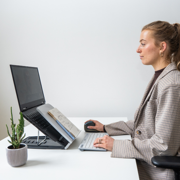 Vele mensen gebruiken een laptopstandaard om ergonomisch thuis te werken. Maar hoe kun je gezond thuiswerken? Adviseur arbeid en gezondheid Linda Ten Katen heeft een blog met praktische tips over thuiswerken geschreven: Hoe kun je gezond thuiswerken?