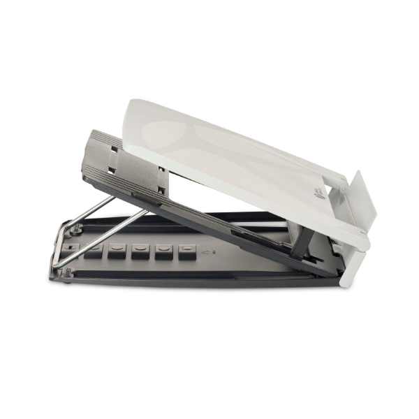 Of je nu thuis werkt, op kantoor bent of onderweg bent: deze laptopstandaard is altijd makkelijk inzetbaar. Je klapt ‘m in een handomdraai open en kiest uit zes ergonomische hoogteposities. Het lichte, compacte ontwerp past zonder moeite in je laptoptas, dus je bent altijd klaar voor productief en comfortabel werken, waar je ook bent. De laptophouder is in zes standen instelbaar en voorzien van een documenthouder