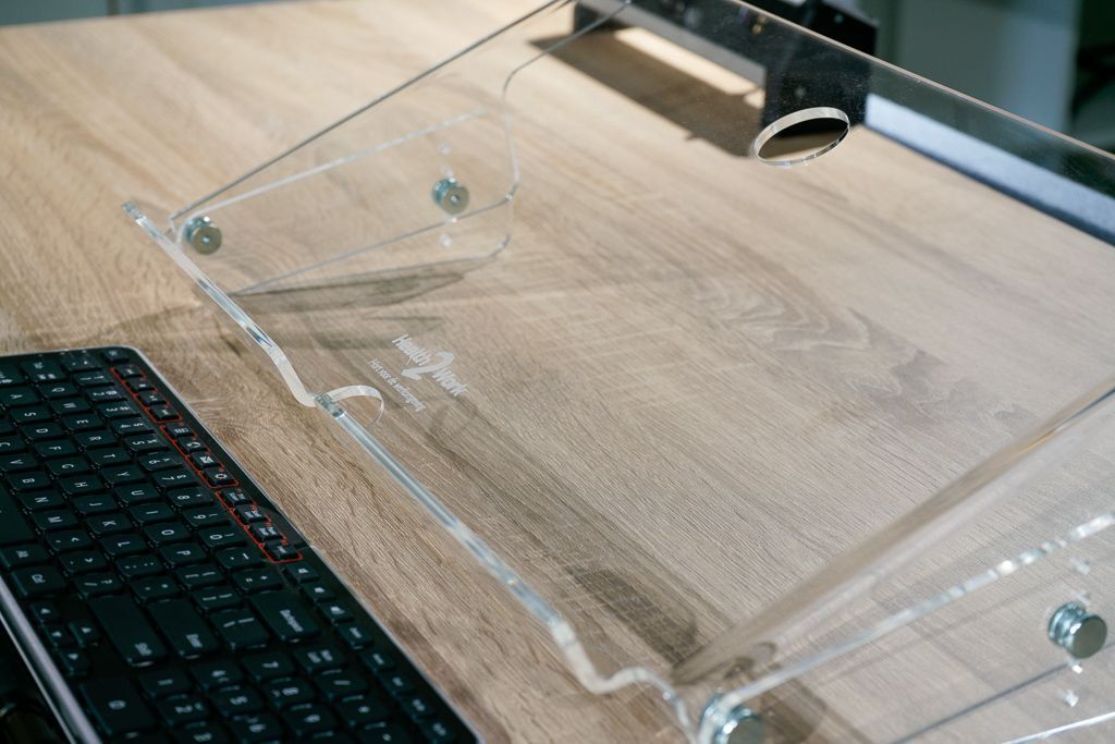 De Ergowork instelbare documenthouder wordt geproduceerd in Nederland. De documenthouder wordt gemaakt van restmateriaal van grote plexiglas schermen die in hoogwaardige toepassingen worden gebruikt. Daardoor is de kwaliteit van de Ergowork documenthouder ook gegarandeerd.