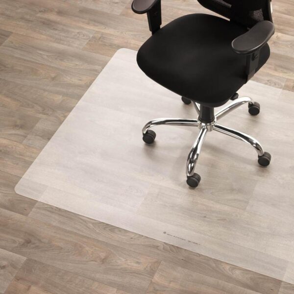 De transparante mat zorgt tevens voor een lage rolweerstand waardoor de kans op zit-gerelateerde klachten afneemt. Deze mat is voor harde vloeren heeft een afmeting van 90 x 120 cm.