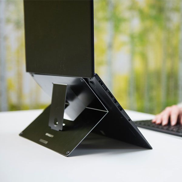 Ultradunne laptopstandaard die je bevestigt aan je laptop. Altijd en overal een juiste werkhouding.