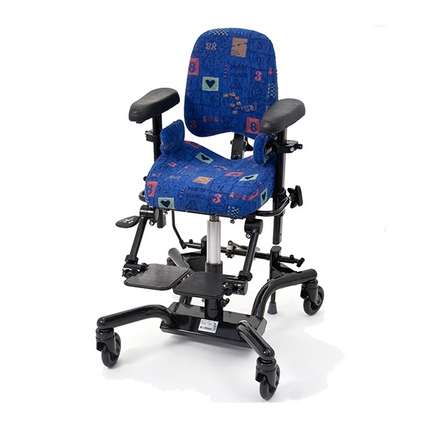 Door de lichtlopende wielen heeft het kind veel vrijheid om zelf te bewegen. De stoel hoeft niet aan geschoven te worden door de ouder of verzorger. De rem is eenvoudig te bedienen, zowel met de hand als de voet. De hendel heeft breedte- en slagverstelling. De zitting van de stoel kan gemaakt worden van hout, traagschuim of speciale kussens. Deze speciale kussens (Ergomedic Plus) zorgen voor verbetering in de zithouding en geven extra comfort aan de stoel. Deze kussens geven optimale stabiliteit en ondersteuning.
