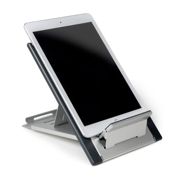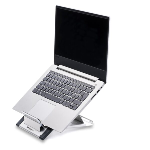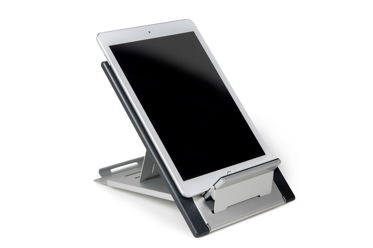 Een studie gepubliceerd door Health2Work toont aan dat het gebruik van een laptopstandaard, gecombineerd met een extern toetsenbord en muis, de mechanische belasting van de nek met 32% vermindert en het comfort met 21% verbetert.
