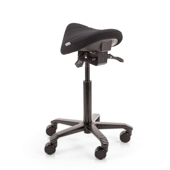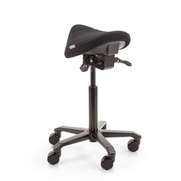 Dit model ergonomische zadelkruk is in hoogte verstelbaar en verkrijgbaar in 3 verschillende maten en kleuren. Het model Laag heeft een verstelbare zithoogte van 49-63 cm en is geschikt voor een lichaamslengte onder 160 cm. Het model Middel heeft een verstelbare zithoogte van 59-77 cm en is geschikt voor een lichaamslengte van 155-180 cm. Het model Hoog heeft een verstelbare zithoogte van 63-88 cm en is geschikt voor een lichaamslengte vanaf 165 cm. Het aluminium onderstel in zwart heeft zachte wielen voor een harde ondergrond. De zadelzitting heeft een standaard afmeting van 34 x 30 cm. Op zoek naar een bredere zitvorm? Bekijk dan de Office Jumper ergonomische zadelkruk. Deze is verkrijgbaar in dezelfde hoogtematen en heeft een zadelzitting van 44 x 30 cm.