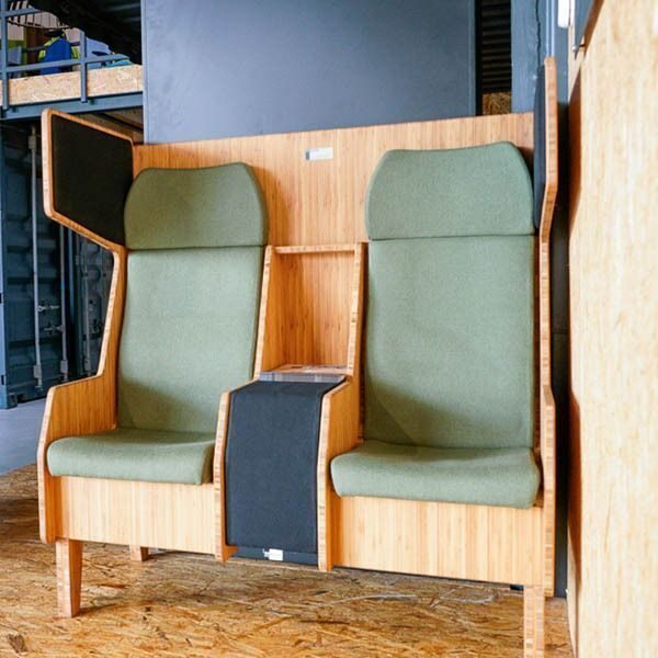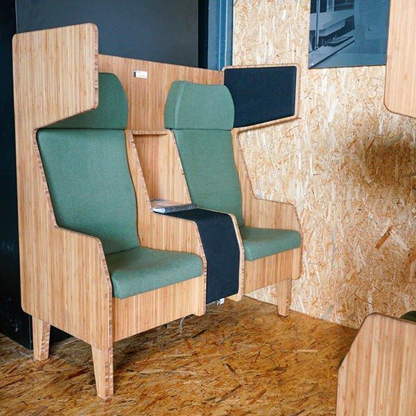 Het frame van de NS duo-treinzit en daarbij horende onderstel zijn gemaakt van materialen als bamboe. Een extra optie is om te kiezen voor een andere kleur bamboe, hierdoor krijgt de NS duo-treinzit naast een mooie uitstraling ook een functioneel aspect. Als we kijken naar design is de armleuning tussen de stoelen gestoffeerd. Een extra optie is dat er gekozen kan worden voor verlichting en/of een powerdock.