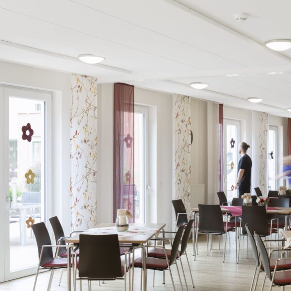 Ecophon Master B en -SQ panelen zijn zeer geluidsabsorberend en nemen weinig ruimte in. Omdat de panelen rechtstreeks op het bouwkundig plafond verlijmd worden, zijn ze zeer geschikt voor ruimtes met een geringe hoogte.
