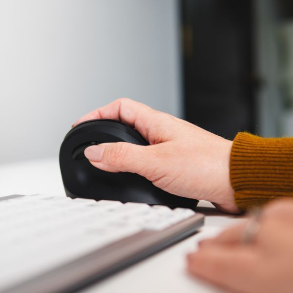 De PRF Mouse Wireless is speciaal ontwikkeld voor mensen die veel achter de computer werken en klachten willen voorkomen of verminderen. Waar traditionele muizen vaak een onnatuurlijke draai in je pols veroorzaken, zorgt dit ontwerp voor een rechtopstaande, ontspannen houding.
