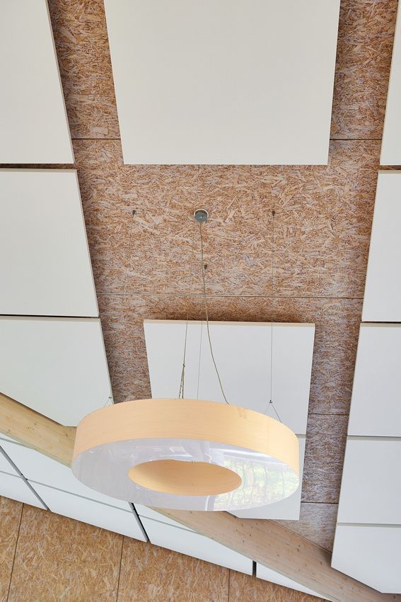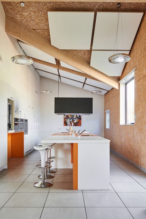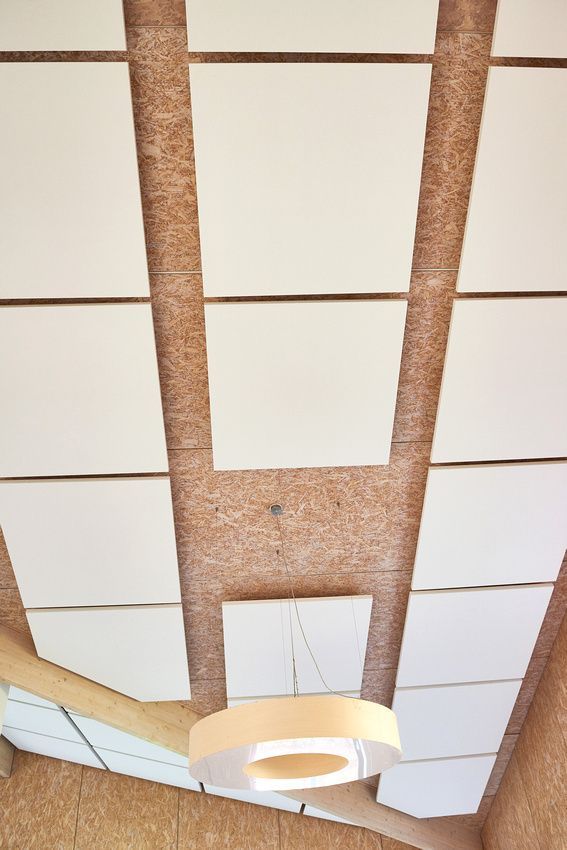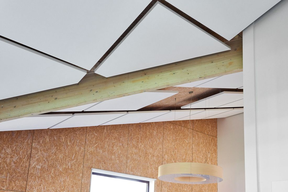 Wij hebben de ruimte voorzien van vierkante akoestische plafondpanelen die wij volledig in lijn met de architectuur hebben mee laten lopen. Zo wordt er geen afbreuk gedaan aan het speelse ontwerp, maar wordt dit juist versterkt.