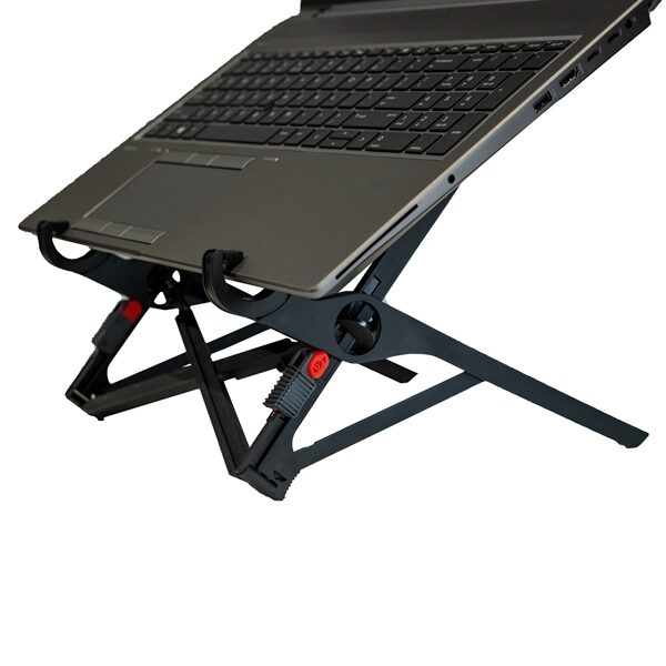 Deze laptopstandaard is ontworpen met mobiliteit als uitgangspunt. Ingeklapt is hij slechts 33 cm lang en past hij moeiteloos in je laptoptas. Met één simpele beweging klap je de standaard uit. Binnen enkele seconden is je ergonomische werkplek klaar voor gebruik.
