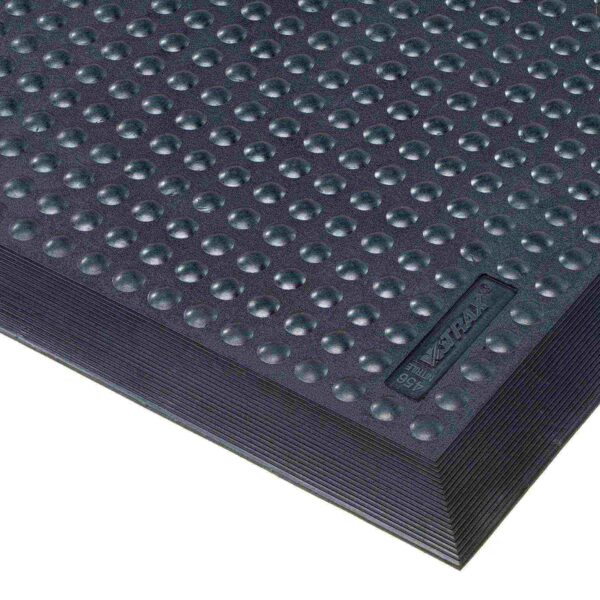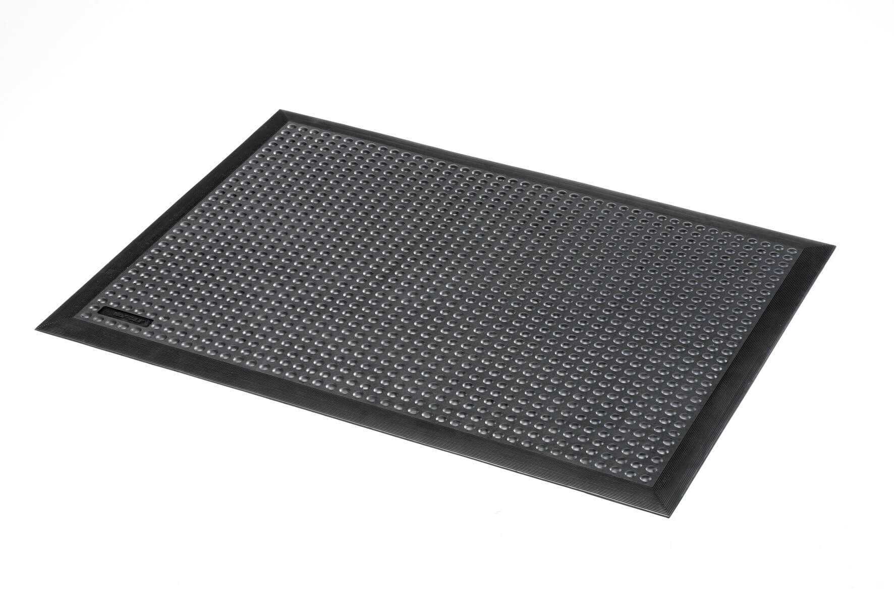Rubbermatten voor individuele werkplekken. Licht in gewicht met extra antivermoeidheidseigenschappen door het ergonomische noppen-patroon. Gevormde randen aan 4 zijdes zijn afgeschuind om struikelgevaar te voorkomen.