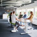 De Winea Pro vergadertafel biedt een directe oplossing. Deze elektrisch in hoogte verstelbare tafel (65–125 cm) maakt het mogelijk om zittend en staand vergaderen af te wisselen – zonder de dynamiek van het overleg te onderbreken.