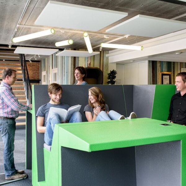 De Health2Work Work-out is een soort hangplaats om in te werken of te overleggen. Het onderdeel van de cube is in combinatie met de optionele stools een leuke manier om zitten, staan en hangen af te wisselen.